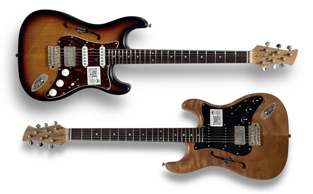Our patent pending True Balance technology was first created to balance magnetic pickups for our hybrid guitars. However, this process has many potential applications, one of which, is balancing pickups for even volume across all the strings of an electric guitar. With this in mind, we proudly reissue our Hollow Baby and Culprit electrics in range of colours and pickup configurations.